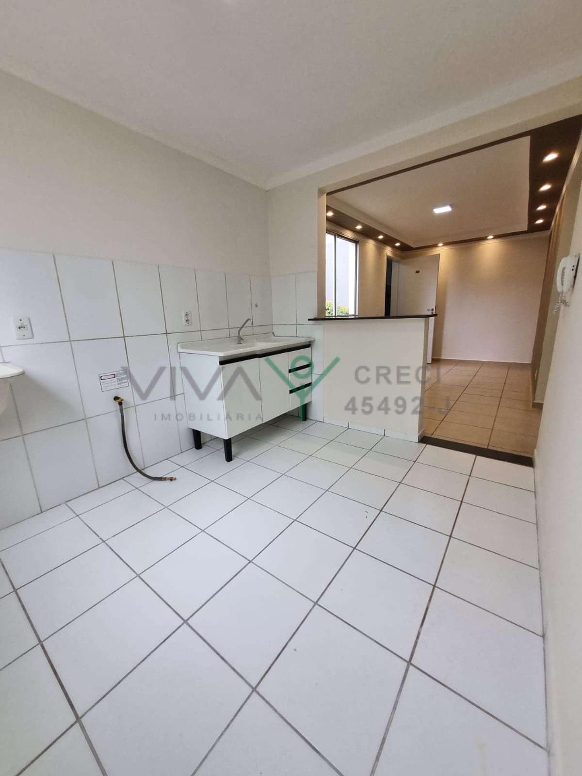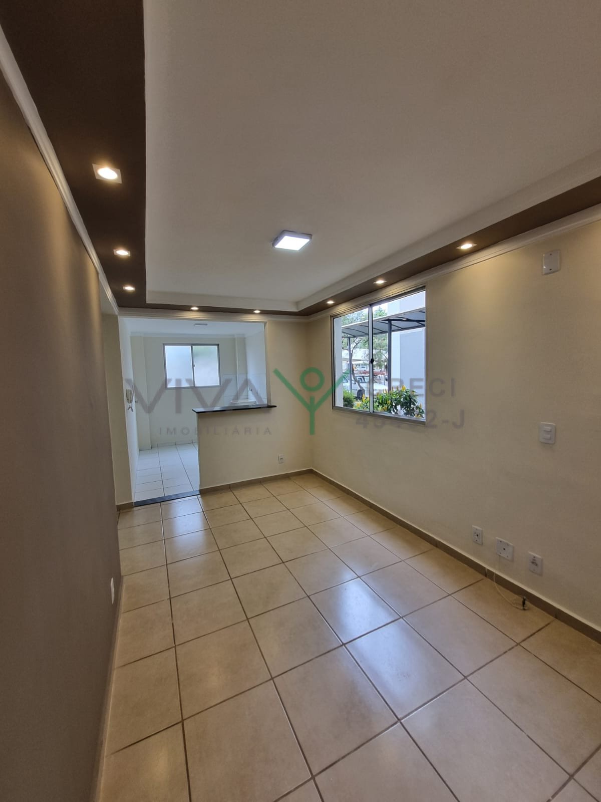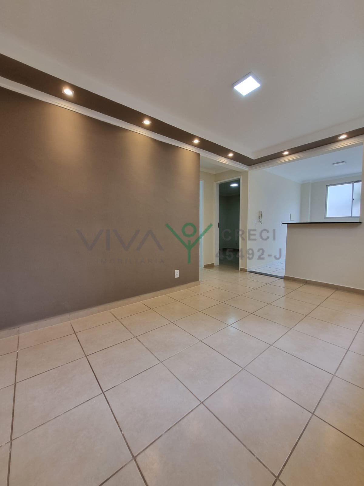 Apartamento – Edifício Spazio Monte Royal – Com 2 quartos, 1 banheiro com box, cozinha integrada com área de serviço, sala de estar e 1 vaga de garagem coberta.